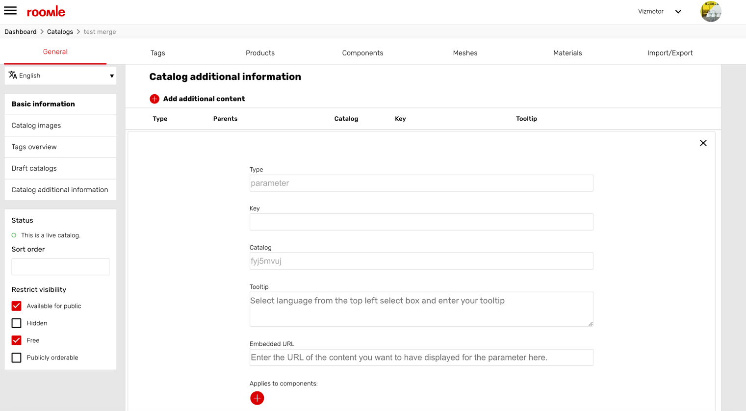 Data is set up as before in Rubens Admin - the only difference is that you can now add an embedded URL to be displayed in the Embedded URL text field. This embedded URL is then opened up as iFrame if the user clicks the "Show more" label inside the tooltip of the corresponding parameter.