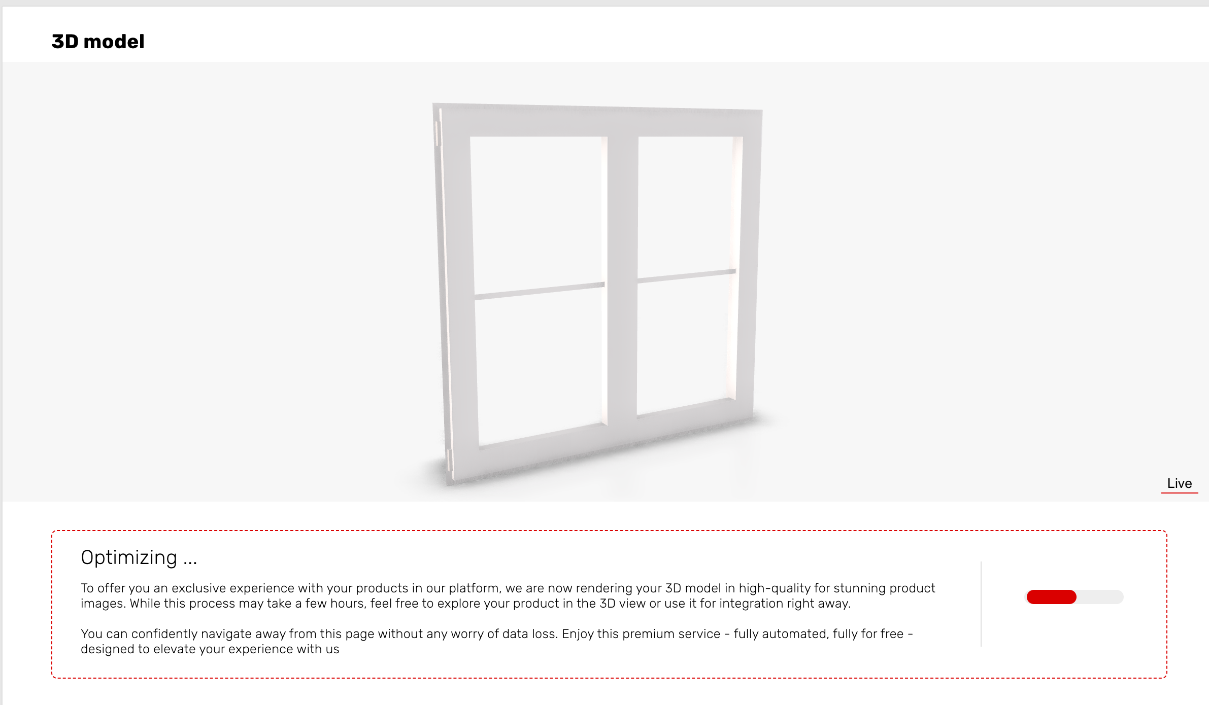 Since we separated the item creation from the renderings on static item creation, we now show information to the user once his/her item is created but rendering is still in progress. That way the user gets a better understanding of what is going on while his item is created.