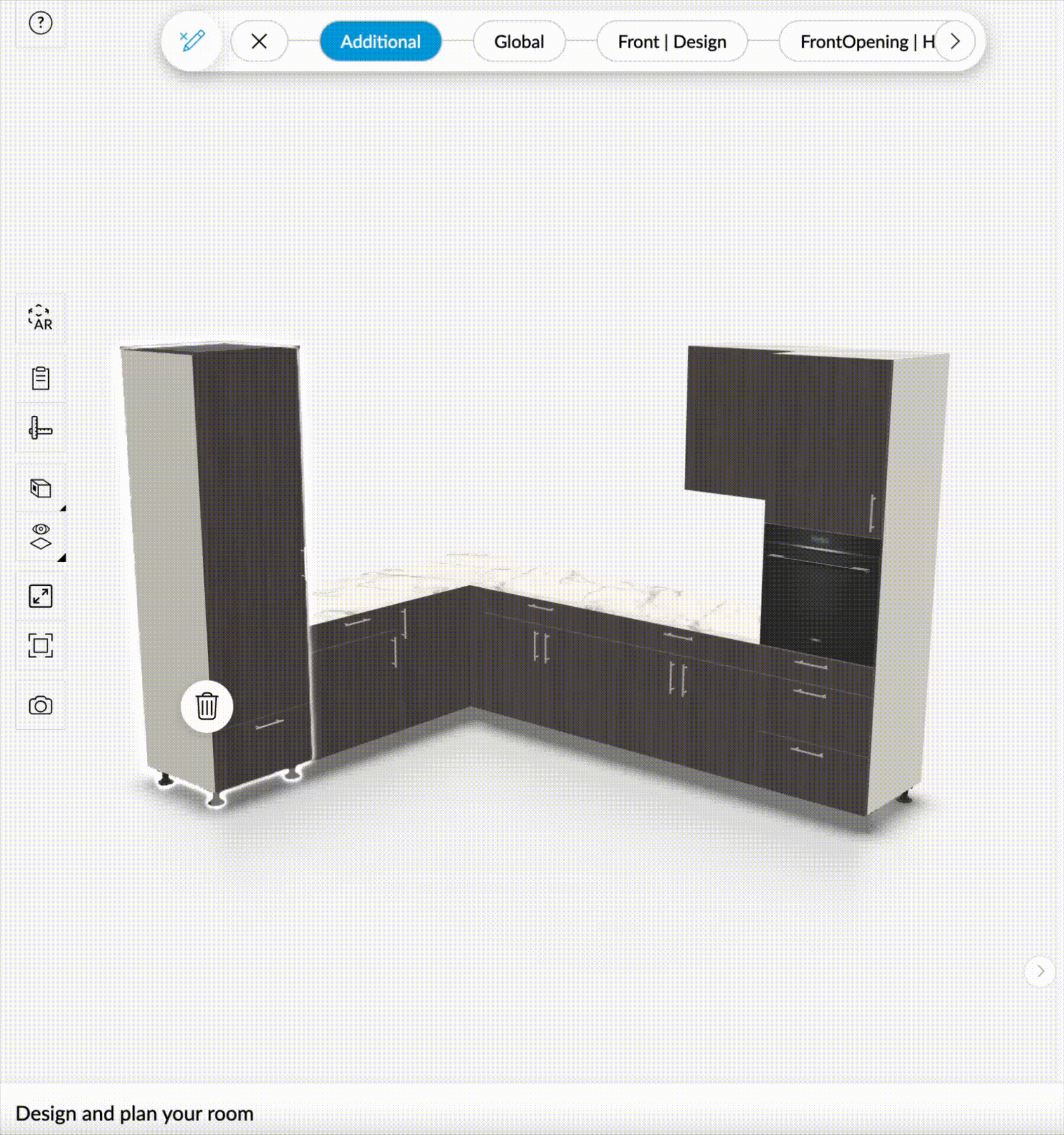 In the Room Designer, you can now **double-select to choose a cabinet inside a group**.\